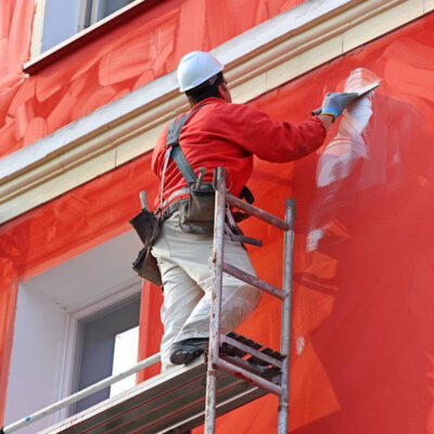 Bei allen Arbeiten an der Fassade sollten Sicherheitsvorkehrungen getroffen werden. Nutzen Sie stabile Leitern, tragen Sie geeignete Schutzausrüstung und arbeiten Sie niemals alleine.